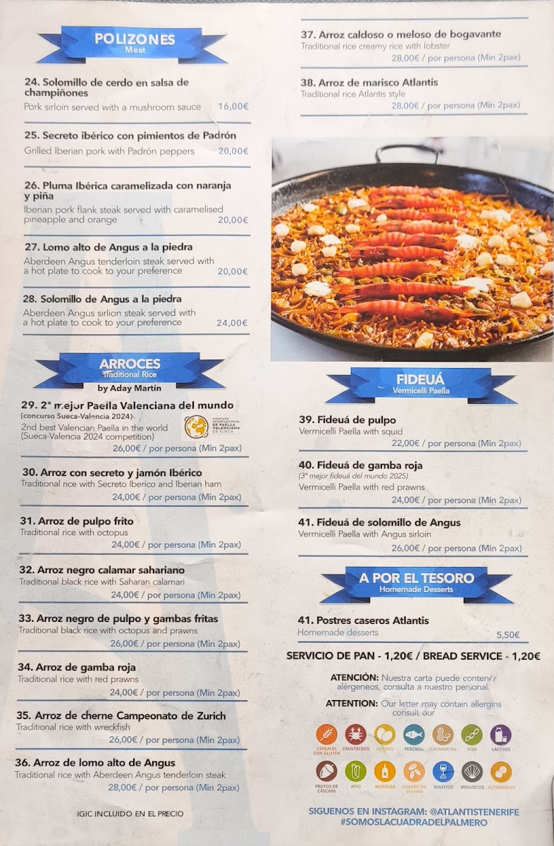 The menu at Atlantis Restaurante Gastro Arrocería offers a balanced blend of classic Mediterranean and traditional Spanish dishes, presented in a way that feels approachable and satisfying. You’ll find a mix of comforting bites alongside more refined plates, ideal for a leisurely lunch, casual dinner, or relaxed evening with cocktails.