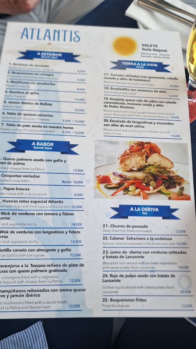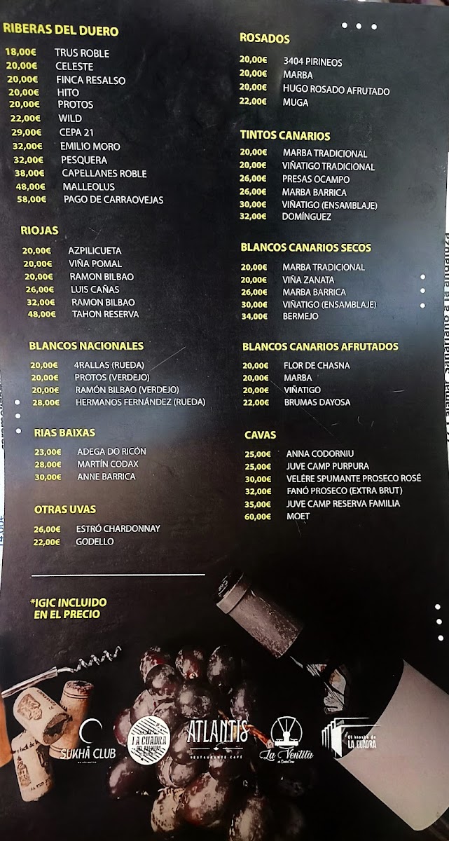 This selection supports a relaxed setting where guests can enjoy a slow-paced meal or gather around with friends for small plates and drinks. Whether stopping by for a quick tapa and a cerveza or settling in for a multi-course dinner, the menu’s variety complements the warm, inviting ambiance found at this Santa Cruz de Tenerife spot.